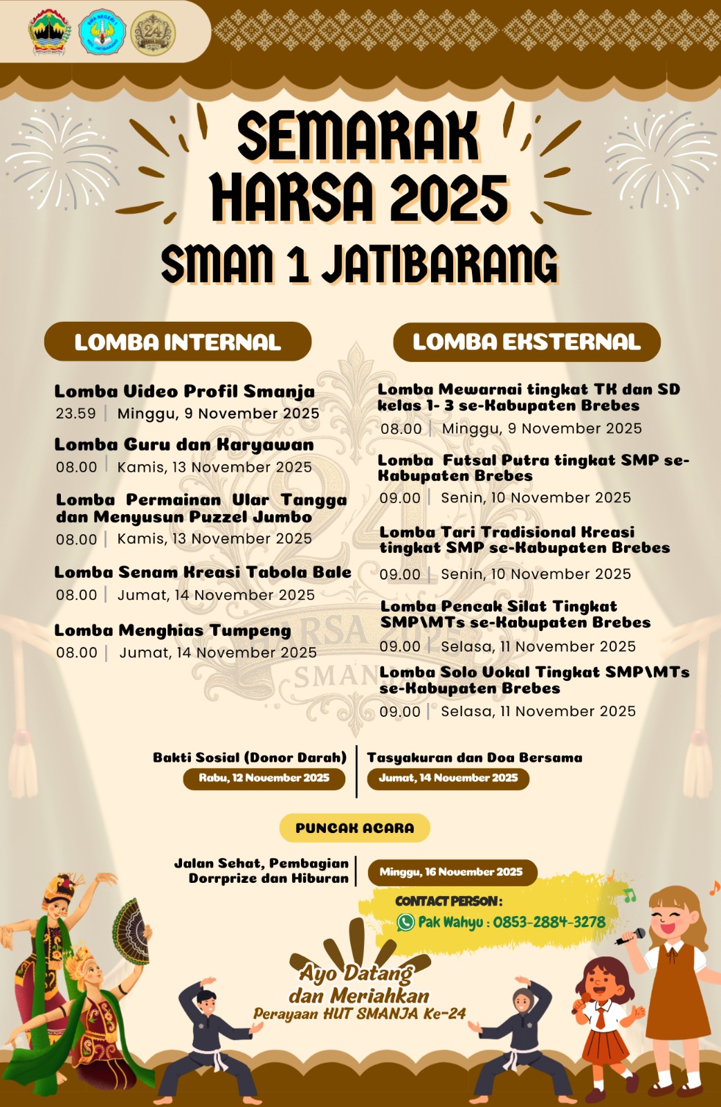HARSA 2025 adalah serangkaian kegiatan dalam rangka memeriahkan Hari Ulang Tahun SMAN 1 Jatibarang ke 24.