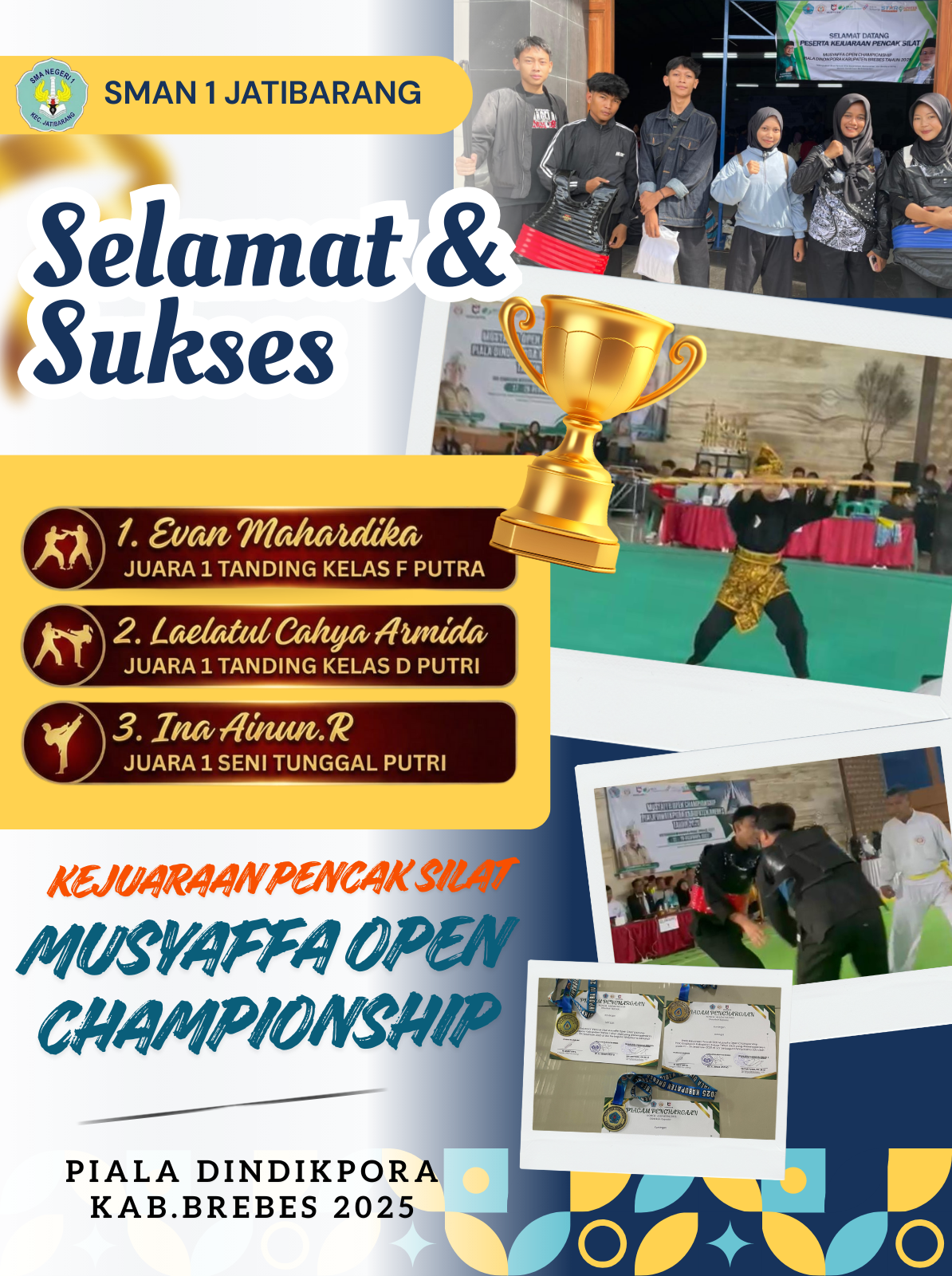 SMAN 1 Jatibarang kembali menorehkan prestasi membanggakan dalam ajang Kejuaraan Pencak Silat Musyaffa Open Championship – Piala Dindikpora Kabupaten Brebes Tahun 2025.